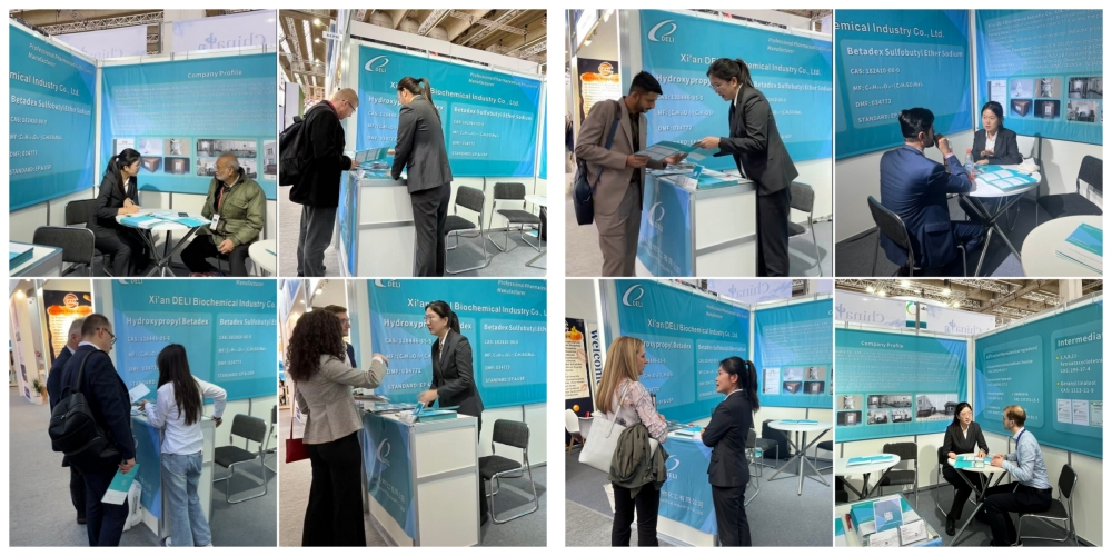 Společnost Xi’an Deli Biochemical Industry Co., Ltd. hrdě představila své nejnovější inovace na stánku 8.0P30 a představila komplexní řadu produktů včetně Hydroxypropyl Betadex (HPBCD), Betadex Sulfobutyl Ether Sodium (SBECD), Glukosamin sulfát sodný chlorid, Menatetrenone a Icodextrin.