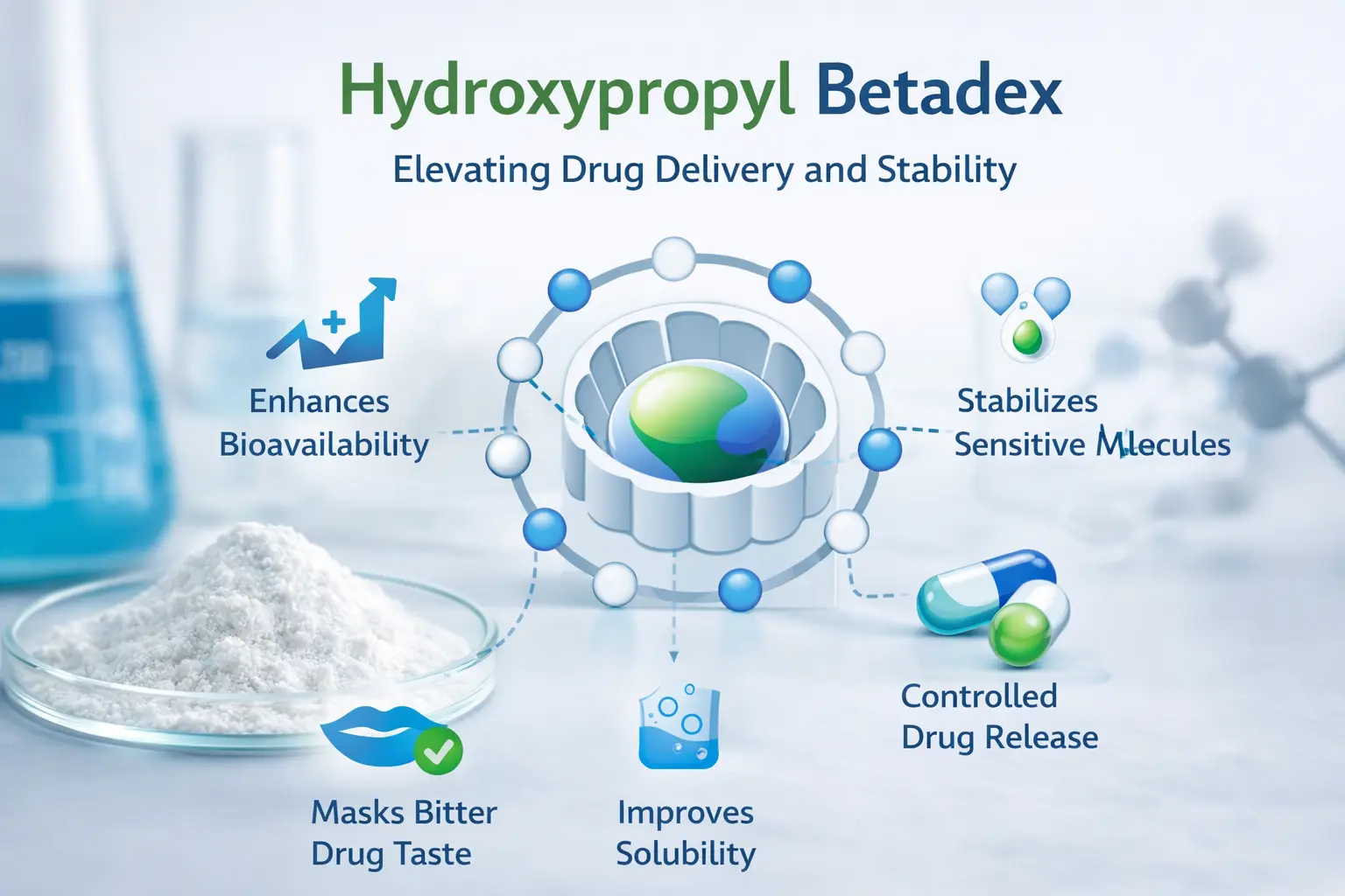 Hydroxypropyl Betadexje revoluční léčivá složka, která mění léky, které se špatně rozpouštějí, na formulace, které velmi dobře fungují. Na tomto změněném derivátu cyklodextrinu je mnoho skvělých věcí, jako je lepší rozpustnost léčiva, lepší biologická dostupnost a lepší stabilita. Technologie molekulárních kapslí vytváří stabilní inkluzní komplexy, které obcházejí problémy, které přicházejí s jinými formulacemi. Vědci ve farmaceutickém průmyslu na celém světě používají tento flexibilní polymerní nosič ke zlepšení metod podávání léků, snížení toxicity a získání konzistentních terapeutických výsledků pro orální i injekční použití.